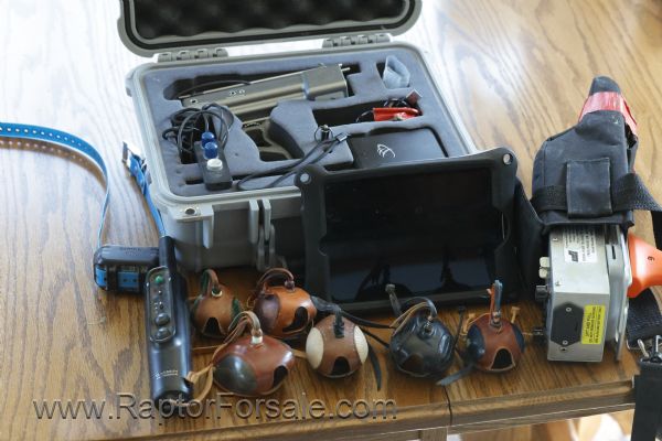 5. Garmin and Tri tronics dog collars and receivers. Gloves, dog leashes, falconry braided leashes some new. Bow net and DHO gazza poles and nets. Pigeon carriers.