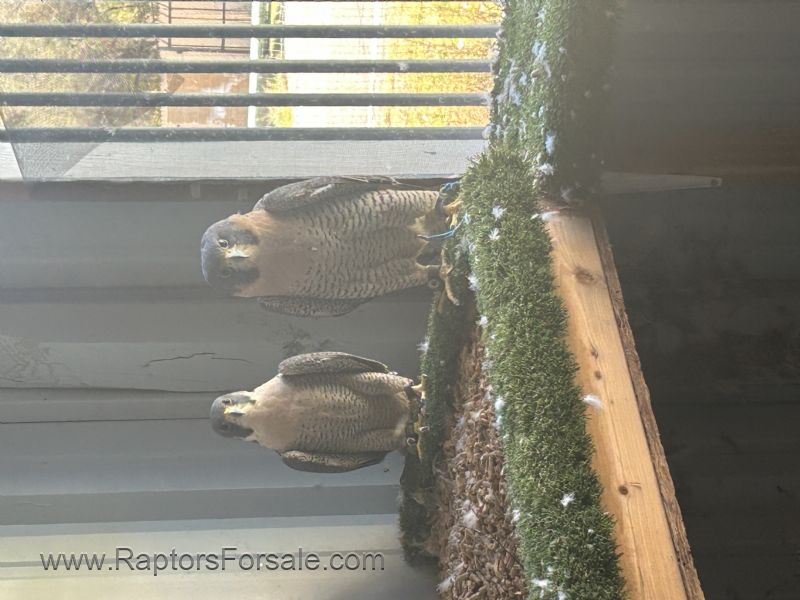 Proven peregrines male is peales female is anatum. Last year was the first year together and successfully produced young. I’m selling all my breeding falcons and focusing on breeding my white Redtails. This pair is $4500